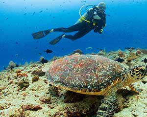 Здесь разводят и выпускают в море черепах (рядом с дайвинг-центром есть мини-ферма), также каждый вечер к берегу приплывают скаты и их кормит сотрудник отеля.